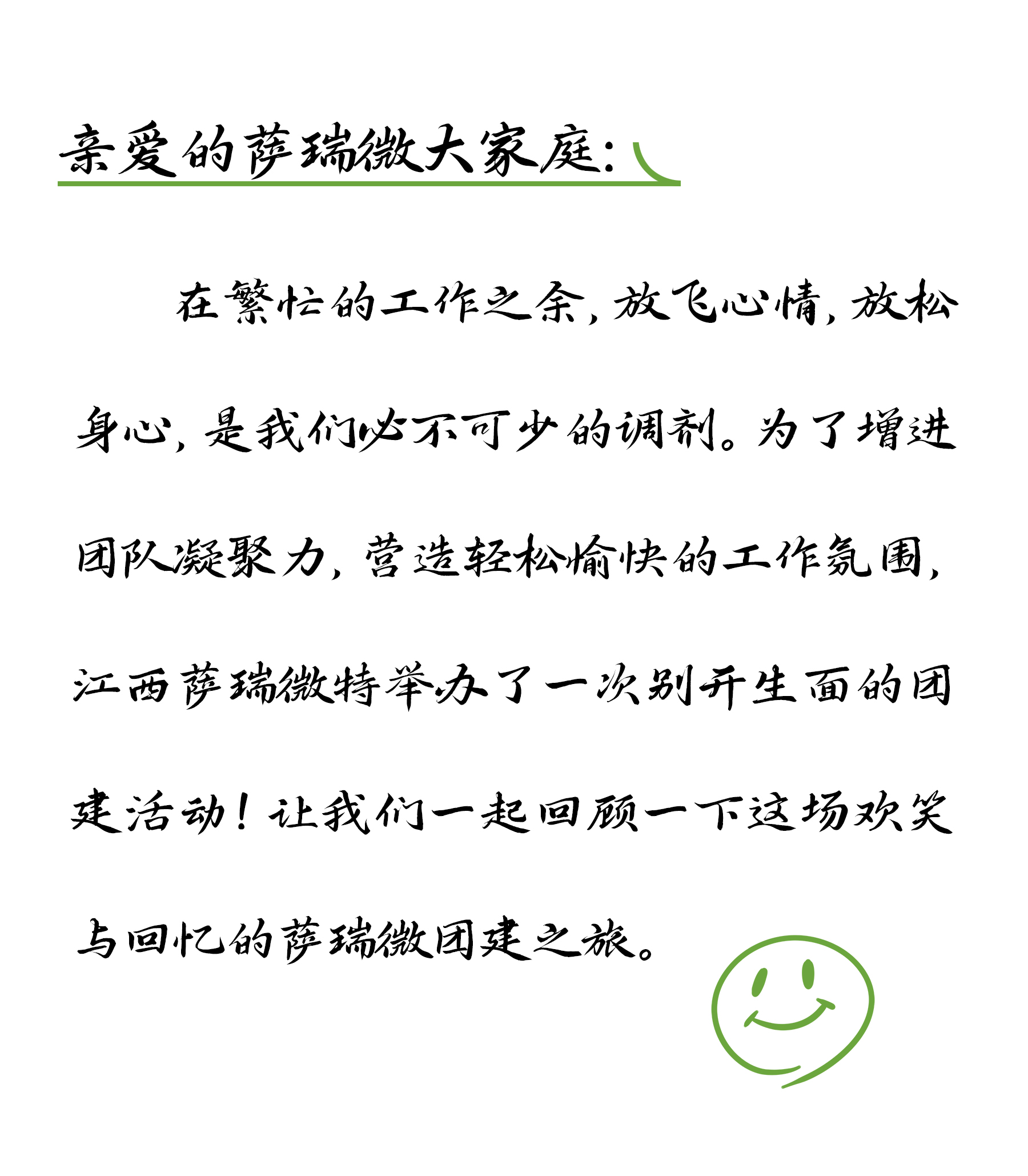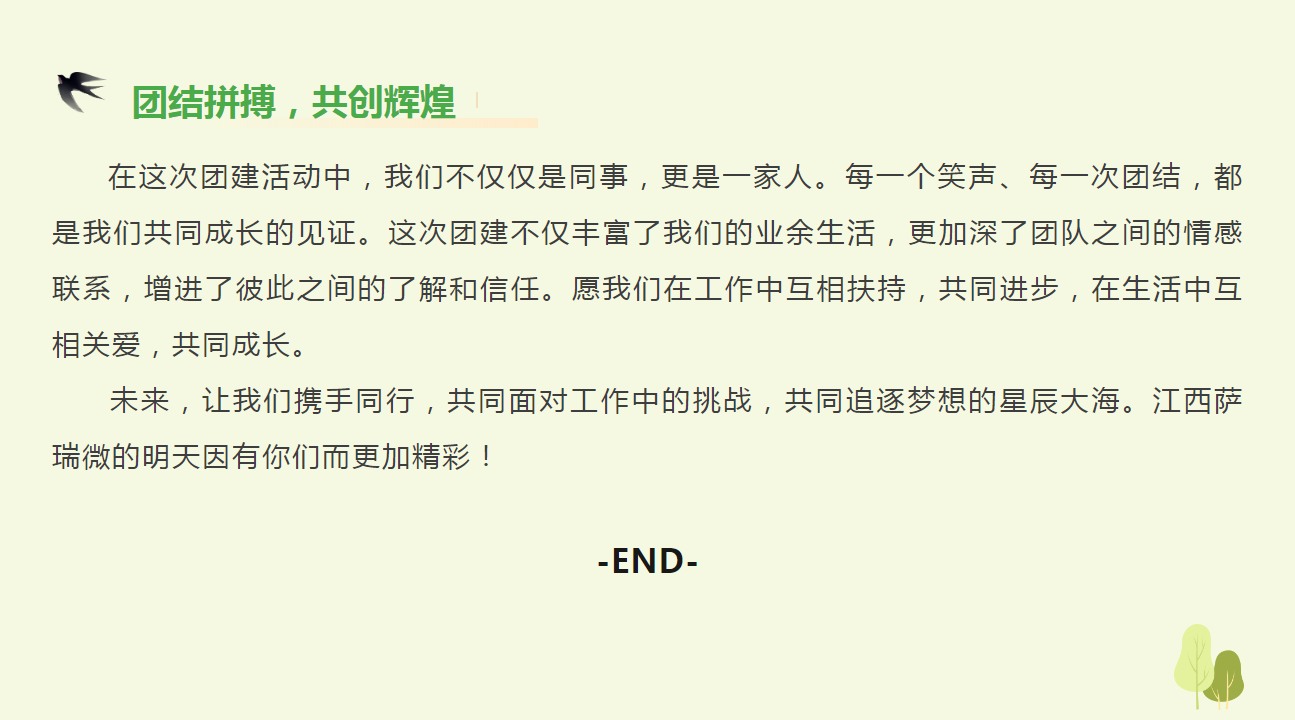 亲爱的taptap点点微大家庭:在繁忙的工作之余,放飞心情,放松身心,是taptap点点必不可少的调剂。为了增进团队凝聚力,营造轻松愉快的工作氛围,江西taptap点点微特举办了一次别开生面的团建活动!让taptap点点一起回顾一下这场欢笑与回忆的taptap点点微团建之旅。